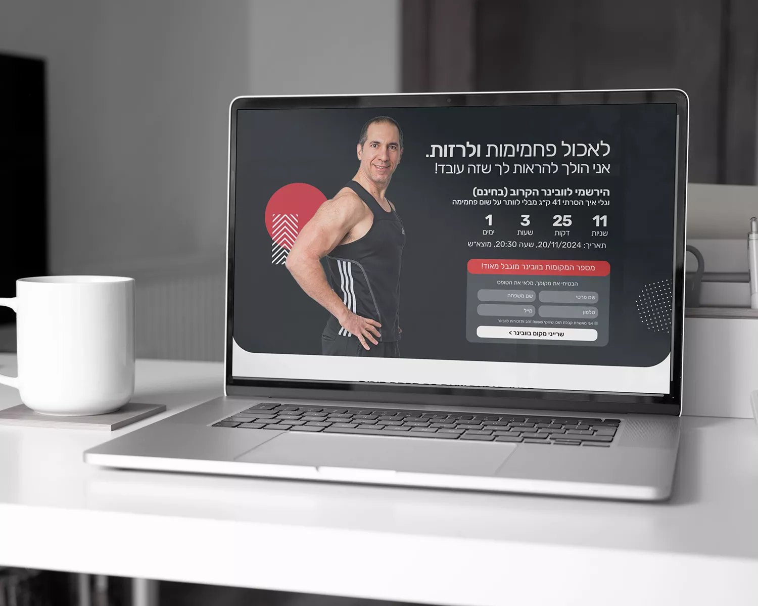 עדי כהן – מאמן לחיטוב והרזיה – פועל איתנו במסגרת ניהול קמפיינים שוטף. הקמנו עבורו מספר דפי נחיתה אסטרטגיים: אחד להצטרפות לקבוצת וואטסאפ סגורה בה מועבר ערך שוטף, ואחד לסינון לידים להרשמה לוובינר כחלק ממסע פרסומי. בזכות בניית תשתית חכמה ומדויקת הצלחנו לשלש את כמות הלידים באותו תקציב, ולהעלות את יחס ההמרה ב-30%.