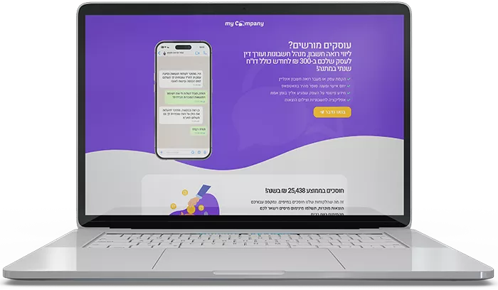 דף נחיתה מקצועי, ממוקד להמרה. אפיון מלא , עיצוב, קופי, בנייה וחיבור מערך אוטומציות למערכת לניהול לידים מסודרת.